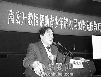 事情開始于去年5月,陶宏開在媒體上看到一位母親為沉迷網(wǎng)絡(luò)的女兒發(fā)出的絕望求助,他震動了,邀請她們母女長談9個小時,這名少女終于戒除了網(wǎng)癮。消息傳開,立時引來許多同樣絕望的家長。從去年7月他發(fā)起“挽救上網(wǎng)成癮者行動”以來,已經(jīng)走過了21個城市,在全國各地義務(wù)作了100多場報告,培訓(xùn)志愿者3000多人,成功挽救300多個上網(wǎng)成癮的孩子,5萬多家長和孩子聽了他的報告,200多家新聞媒體報道了他的事跡,一時轟動全國。
