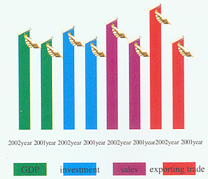 The major economic index of Hubei Province in 2002: under the circumstance of the unstable world economy and disaster-stricken agriculture, tile GDP of the Province amounted to 497.563 billion Yuan (RMB), which, calculated in terms of comparable prices, increased by 9.1% than that of tile previous year. The increasing rate exceeded that of the nation by hl percentage point. The total fix-asset investment was 169.5 billion Yuan (RMB), which increased by 9.2% than that of the previous year. The total volume of re- tail sales of the whole province was 219.842 yuan (RMB), increased by 11.3% than that of the previous year. The volume of exporting trade is $2.011 billion, increased by 16.8%. The disposable personal income of the residents in cities and towns throughout the province reached 6,800 Yuan (RMB). The personal net in- come of farmers was 2,444 Yuan (RMB).