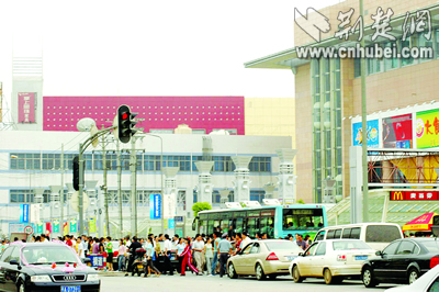 昨日上午11時前后,友誼大道路口、凱旋門廣場門前的兩處斑馬線上,過街的人流越聚越多,現(xiàn)場執(zhí)勤的數(shù)十名交管人員只得暫時棄用紅綠燈,對行人約每分鐘放行一次。中午12時,記者乘公汽經(jīng)過現(xiàn)場,從二橋武昌橋頭到岳家嘴,足足花了25分鐘。中午和傍晚的高峰時段,徐東大街出現(xiàn)大塞車,汽車“長龍”從長江二橋武昌引橋,一直延伸至岳家嘴。