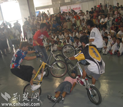 單車高手們驚險的表演觀眾:讓我也來體驗一下(電子競技)瞧!玩得多投入力與美的展示動感十足,秀發(fā)飛揚小選手的跆拳道表演引人關注