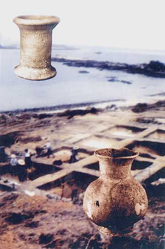 長頸圈足陶壺:食器或水器(下,高26厘米)[相關鏈接]:20世紀中國百項考古大發(fā)現(1-20)21、大溪遺址(圖)22、城頭山遺址(圖)23、屈家?guī)X遺址(圖)24、崧澤遺址(圖)25、馬家窯遺址(圖)26、柳灣墓地(圖)27、牛河梁遺址(圖)28、城子崖遺址(圖)29、良渚文化遺址群(圖)30、石家河遺址群(圖)31、陶寺遺址(圖) 32、王城崗遺址(圖)33、齊家坪遺址(圖)34、卡若遺址(圖)35、石峽遺址(圖) 36、東灣仔北遺址(圖)37、圓山遺址(圖)38、二里頭遺址(圖)39、東下馮遺址(圖)40、夏家店遺址(圖)
