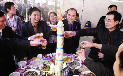 襄樊市委領導靳永龍、馬黎,棗陽市委書記常全華和聶新勝等人,來到精心制作的生日蛋糕前,切生日蛋糕。頓時,歡樂的禮花四處綻放,鞭炮齊鳴。來自全國各地的百余名記者紛紛舉起手中的相機,閃光燈閃個不停,爭相記錄下這難忘的一刻。