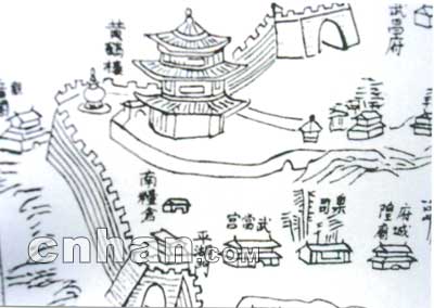 此石版浮雕圖1748年制,由湖南省芷江文物管理所收藏。原圖尺寸97厘米×55厘米,載《武漢歷史地圖集》。