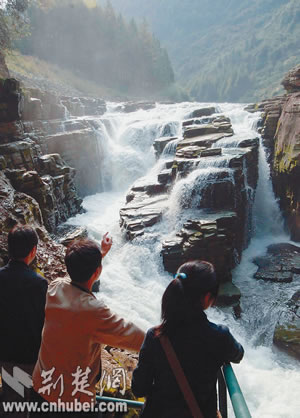 難怪恩施州委書記湯濤多次感嘆:“養(yǎng)在深閨人未識,無人跡處有奇觀”。他說,“‘兩路’通了以后,游客就可以從武漢坐火車或走高速到恩施,到清江闖灘,游沐撫大峽谷,看梭布埡石林,漂神農(nóng)溪,再順江而下游三峽大壩,形成一個旅游圈!蔽磥矶魇┞糜尉已在他心里悄然勾畫。