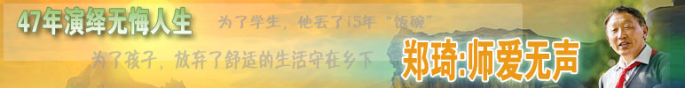 ·鄭琦:為了太陽底下最美好的事業(yè) 從當教師的那天起,我就深深地愛上了這個職業(yè),工作的時間越長,愛得越深。 ·楊靜:長大后我就成了你 我毫不猶豫地填報了當陽師范音樂專業(yè)——因為我想做一個像鄭老師那樣的老師! ·周志富:鄭老師是我最親的人 有句話藏在我的心里整整8年了,今天,我要當著這么多人的面叫鄭老師一聲:爸爸! ·阮建平:鄭老師是我人生的引路人 鄭老師所做的一切,不僅是對學生的今天負責,更是對學生的未來負責。 ·夏雨:一生為了孩子 鄭老師的不同凡響之處就在于,他把每個人都能做到的小事,堅持做了47年,做成了許多人都難以做到的大事。