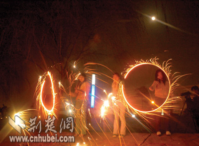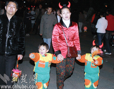 中山公園里,一對(duì)對(duì)情侶紛紛登上湖中的小舟,在燭光中許下愛(ài)情的誓言。25歲游客小敏舉著燈籠,偎依在男友的懷里,羞澀地笑著告訴記者:“今天我同意嫁給他了,這是我們金豬年最大的喜慶!