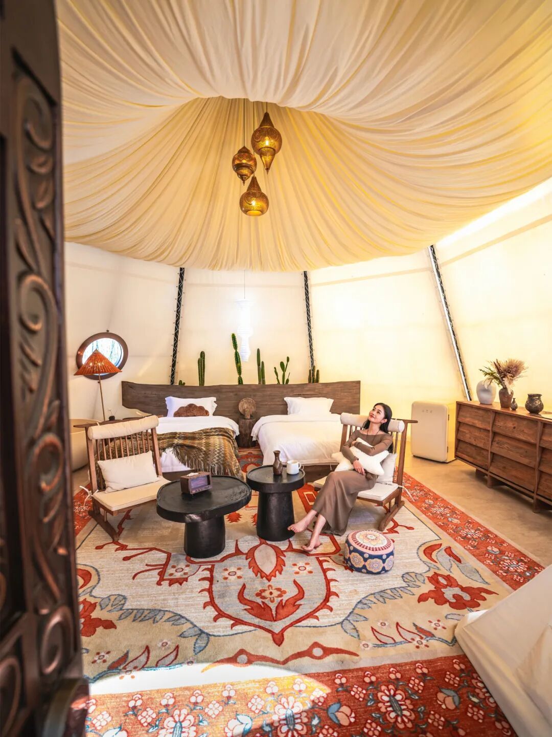 住宿選擇:舒適便捷,適配團(tuán)隊(duì)需求,夢(mèng)棲谷度假區(qū)三大主題酒店+和韻樓,房型涵蓋標(biāo)間、套房,可滿足上百人團(tuán)隊(duì)入住。酒店裝修融入草原元素,部分房間推窗可見(jiàn)野,新春期間還會(huì)有專屬布置,讓團(tuán)隊(duì)住得舒心又有儀式感。