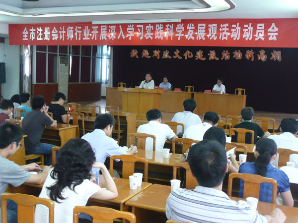 會上,市注冊會計師行業(yè)黨總支書記方曉同志宣讀了《關(guān)于全市注冊會計師行業(yè)開展深入學習實踐科學發(fā)展觀活動的實施方案》。市內(nèi)7家會計師事務(wù)所的黨員及非黨員員工約80多人參加了會議。