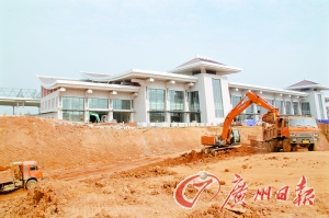 車站仿三國建筑 赤壁站,就在市政府背后。10月27日,映入記者眼簾的是一個忙碌的建筑工地。