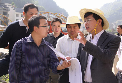 神農(nóng)架林區(qū)黨委政府召開下谷鄉(xiāng)現(xiàn)場(chǎng)辦公會(huì)議。右一為周森峰。