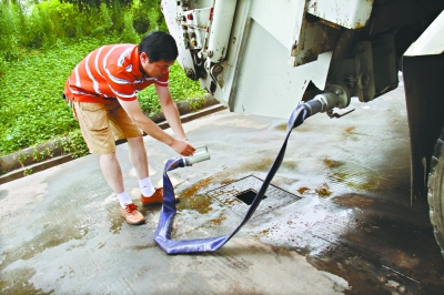 工人師傅說,改裝后,每輛車可以排出至少70%的水分。今后轉(zhuǎn)運(yùn)垃圾時,就近找個下水道,可將垃圾擠干后再運(yùn),不僅解決隨地“大小便”問題,還能增加運(yùn)輸量,一舉多得。
